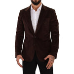• Dolce & Gabbana Brown Corduroy Slim Fit Coat DG Logo Blazer