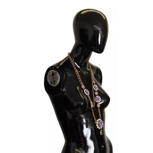 Dolce & Gabbana Gold Tone Floral Crystals Purple Embellished Necklace