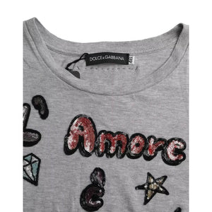 Dolce & Gabbana Gray Cotton L'Amore E'Bellezza Top T-shirt
