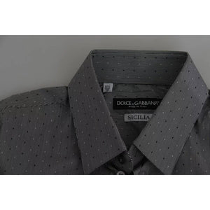 • Dolce & Gabbana Gray SICILIA Dotted Semi Fitted Formal Shirt