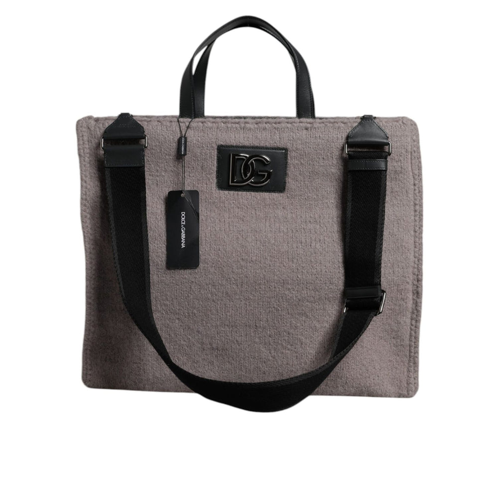 Dolce & Gabbana Grey Alpaca Wool Logo Plaque Tote Shoulder Bag