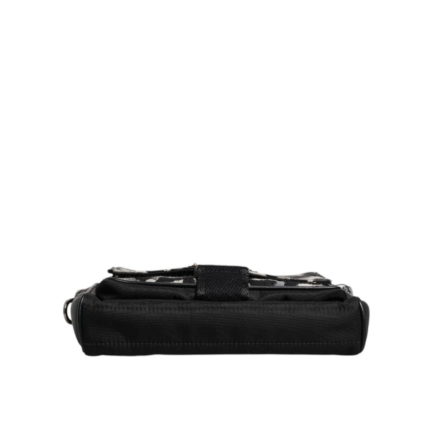 Gorgeous brand new, 100% Authentic Dolce & Gabbana black/multicolour leather trim patterned jacquard logo plaque bag with decorative buckle, detail top zip fastening, front flap pocket, adjustable detachable shoulder strap and main compartment