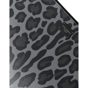 Dolce & Gabbana Multicolor Leopard Jacquard Logo Plaque Document Briefcase Bag