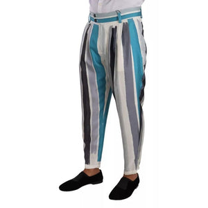 Dolce & Gabbana Multicolor Striped Silk Tapered Pants