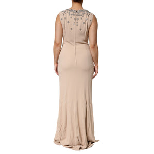 Gorgeous brand new with tags, 100% Authentic Dolce & Gabbana full-length gown in nude/ecru tone. This sleeveless evening dress is beautifully detailed with sparkling crystal embellishments and delicate beading across the bodice and neckline, creating a glamorous and timeless look. Perfect for formal occasions, red carpet events, or special evenings.