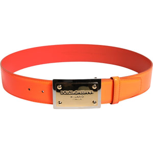 Dolce & Gabbana Orange Gold Tone Metal Logo Buckle Belt