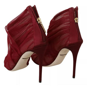 Dolce & Gabbana Red Tulle Ankle Boots Stiletto Heels Shoes
