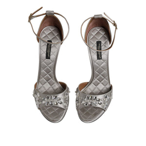 Dolce & Gabbana Silver Ankle Strap Crystal Sandals Shoes
