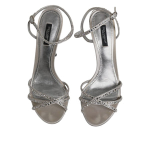 Dolce & Gabbana Silver Crystal Ankle Strap Sandals Shoes