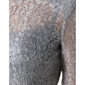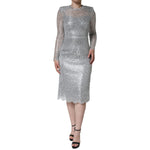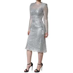 Dolce & Gabbana Silver Floral Lace Bodycon Sheath Midi Dress