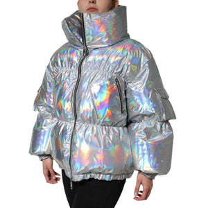 Dolce & Gabbana Silver Iridescent Puffer Full Zip Coat Jacket