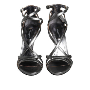 Dolce & Gabbana Silver Keira Leather Heels Sandals Shoes