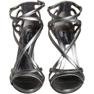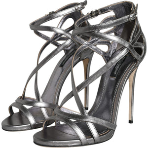 Dolce & Gabbana Silver Keira Leather Heels Sandals Shoes