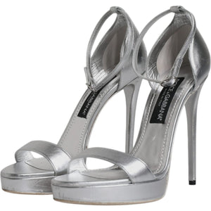 Dolce & Gabbana Silver Leather Platform Keira Sandals Shoes