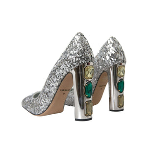 Dolce & Gabbana Silver Sequin Embellished Heels Pumps Shoes