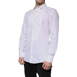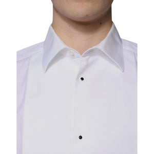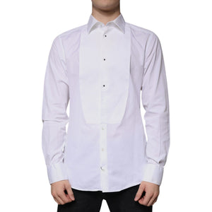• Dolce & Gabbana White Bib Cotton Poplin GOLD Men Formal Shirt