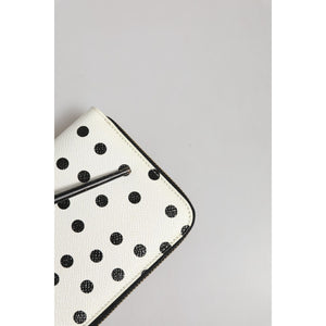 Dolce & Gabbana White Black Dotted Leather Zip Around Continental Wallet