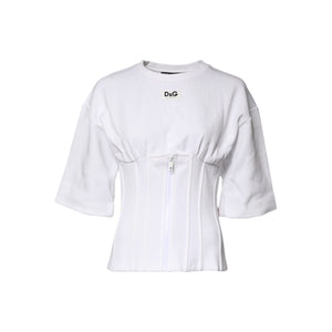 Dolce & Gabbana White Cotton Blend 3/4 Sleeves Blouse Top