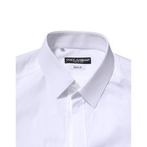 • Dolce & Gabbana White Cotton GOLD Long Sleeve Men Dress Shirt
