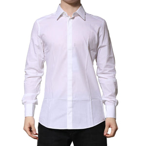 Dolce & Gabbana White Cotton GOLD Long Sleeves Formal Shirt