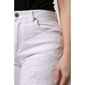 • Dolce & Gabbana White Cotton High Waist Skinny Denim Jeans