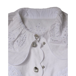 • Dolce & Gabbana White Cotton Lace Trim Collared Blouse Top