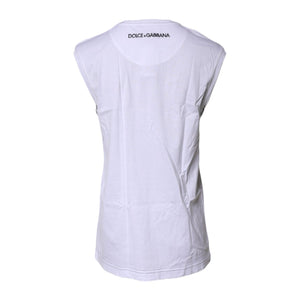 Dolce & Gabbana White Cotton Sleeveless Printed Tank T-shirt