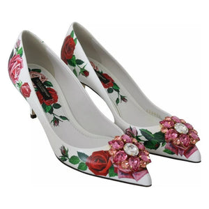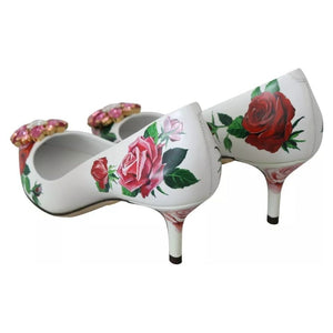 Dolce & Gabbana White Leather Roses Crystal Pumps Shoes