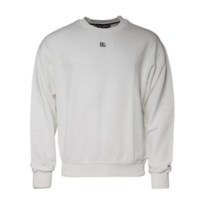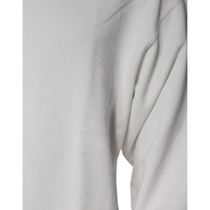 Dolce & Gabbana White Logo Cotton Crew Neck Pullover Sweater