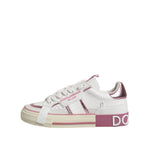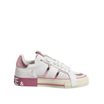 Dolce & Gabbana White Pink Leather Low Top Sneakers Shoes