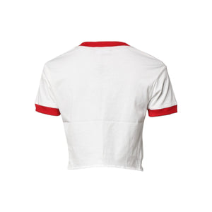 Dolce & Gabbana White Printed Round Neck Cropped Top T-shirt