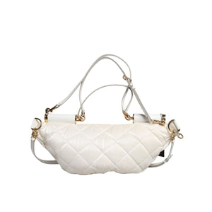Gorgeous brand new, 100% Authentic Dolce & Gabbana white quilted finish gold-tone logo plaque two-way zip fastening detachable adjustable waist strap flat top handles main compartment internal patch pockets internal zip-fastening pocket.
