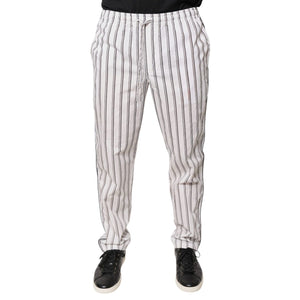 Dolce & Gabbana White Stripes Cotton Skinny Dress Pants
