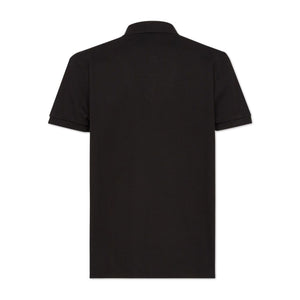 black cotton polo collar short front button fastening logo patch at the chest short sleeves straight hem Logo cotton polo shirt Size and Fit - This piece fits true to size. We recommend you get your regular size. Model is 1,84m / 6ft 1in wearing size M