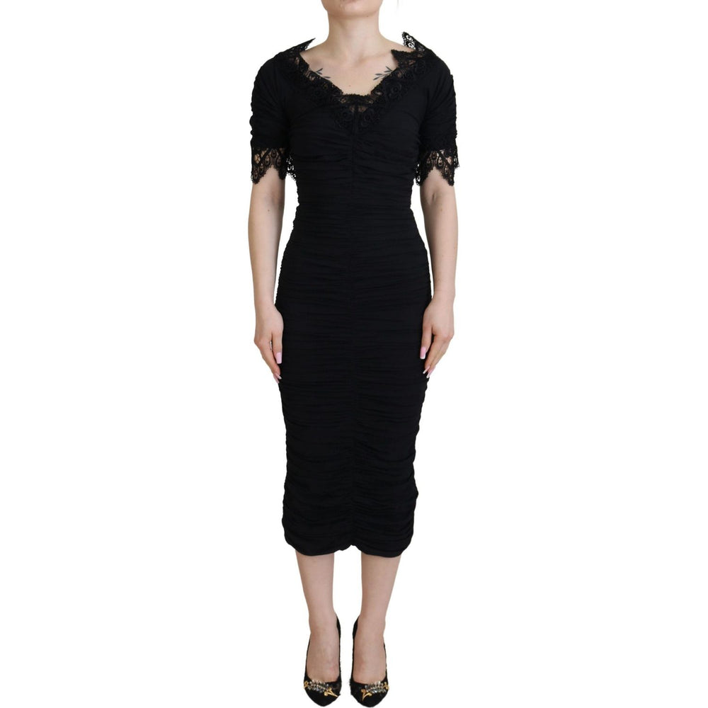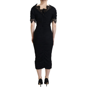 Dolce & Gabbana Black Sheath Midi Bodycon Lace Silk Dress