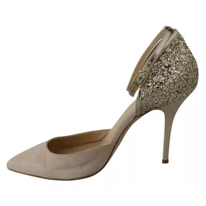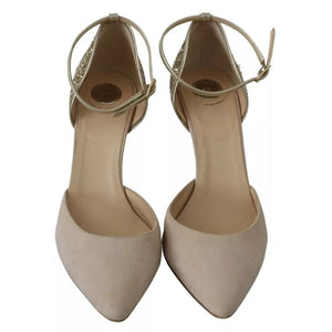 Elisabetta Franchi Beige Linen Ankle Strap High Heels Shoes