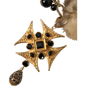 Gorgeous brand new with tags, 100% Authentic Dolce & Gabbana filigree crystal cross necklace features a choker with striking leopard beads and fur elements.