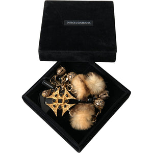 Dolce & Gabbana Gold Black Crystals Lapin Fur Filigree Chocker Necklace