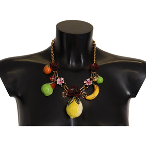 Dolce & Gabbana Gold Brass Sicily Fruits Roses Statement Necklace