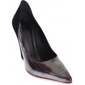 Gorgeous brand new with tags, 100% Authentic CEDRIC CHARLIER exclusive gray metallic leather and black suede pumps shoes. Best craftsmanship and a work of art.