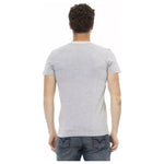 Elevate your wardrobe with the sleek sophistication of Trussardi Action’s Gray V-neck T-shirt. A garment that captures the perfect blend of contemporary style and classic comfort. Adorned with an eye-catching front print, it’s a piece designed to make a statement while providing an exceptional fit for the fashion-forward individual.