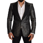 Dolce & Gabbana Gray Metallic Black Slim Tuxedo Blazer