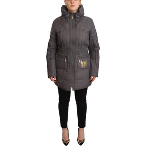 Roccobarocco Gray Quilted Long Sleeves Logo Patch Full Zip Jacket