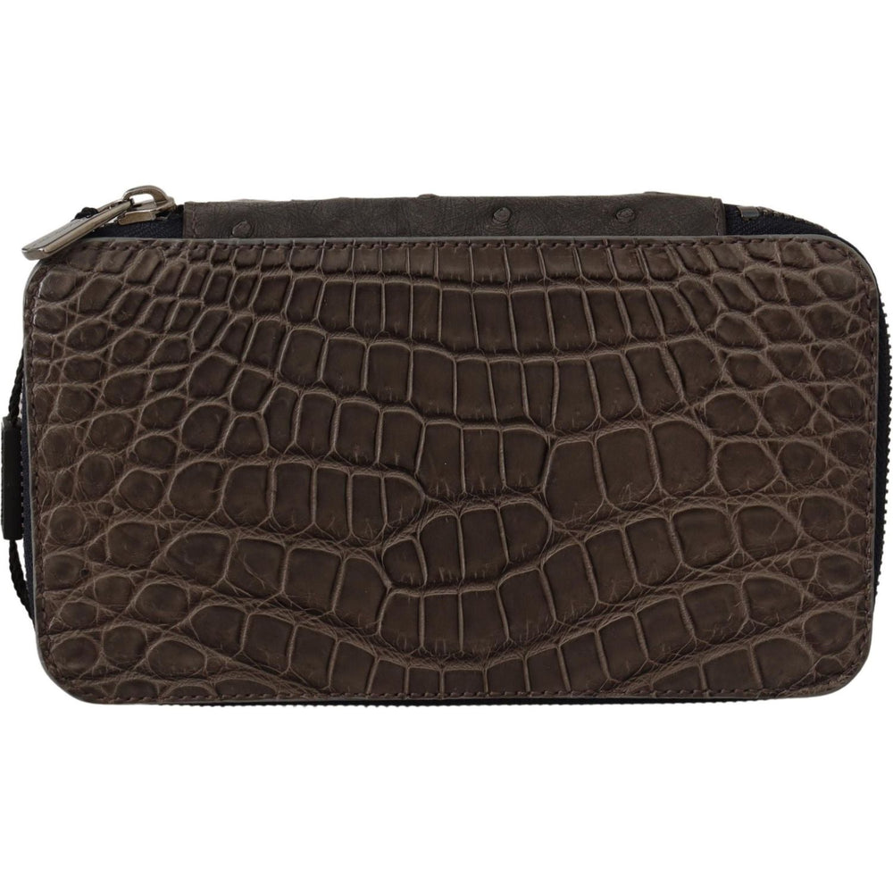 Dolce & Gabbana Gray Skin Leather Vanity Case Toiletry Shaving Bag