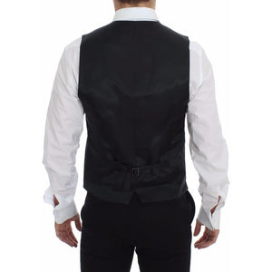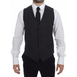 Dolce & Gabbana Gray Striped Wool Logo Vest Gilet Weste
