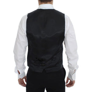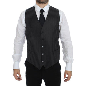 Dolce & Gabbana Gray Striped Wool Single Breasted Vest