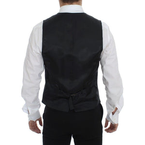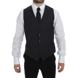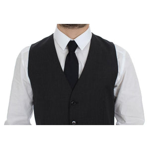 Dolce & Gabbana Gray Striped Wool Single Breasted Vest