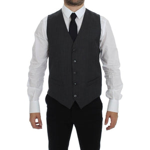 Dolce & Gabbana Gray Striped Wool Single Breasted Vest