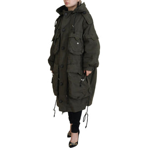 Dsquared² Green Hooded Full Zip Long Parka Coat Jacket