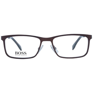 Hugo Boss Brown Men Glasses Frame in stainless steel, full-rim rectangle style with demo lenses. Includes branded case. Size 53-17-145.